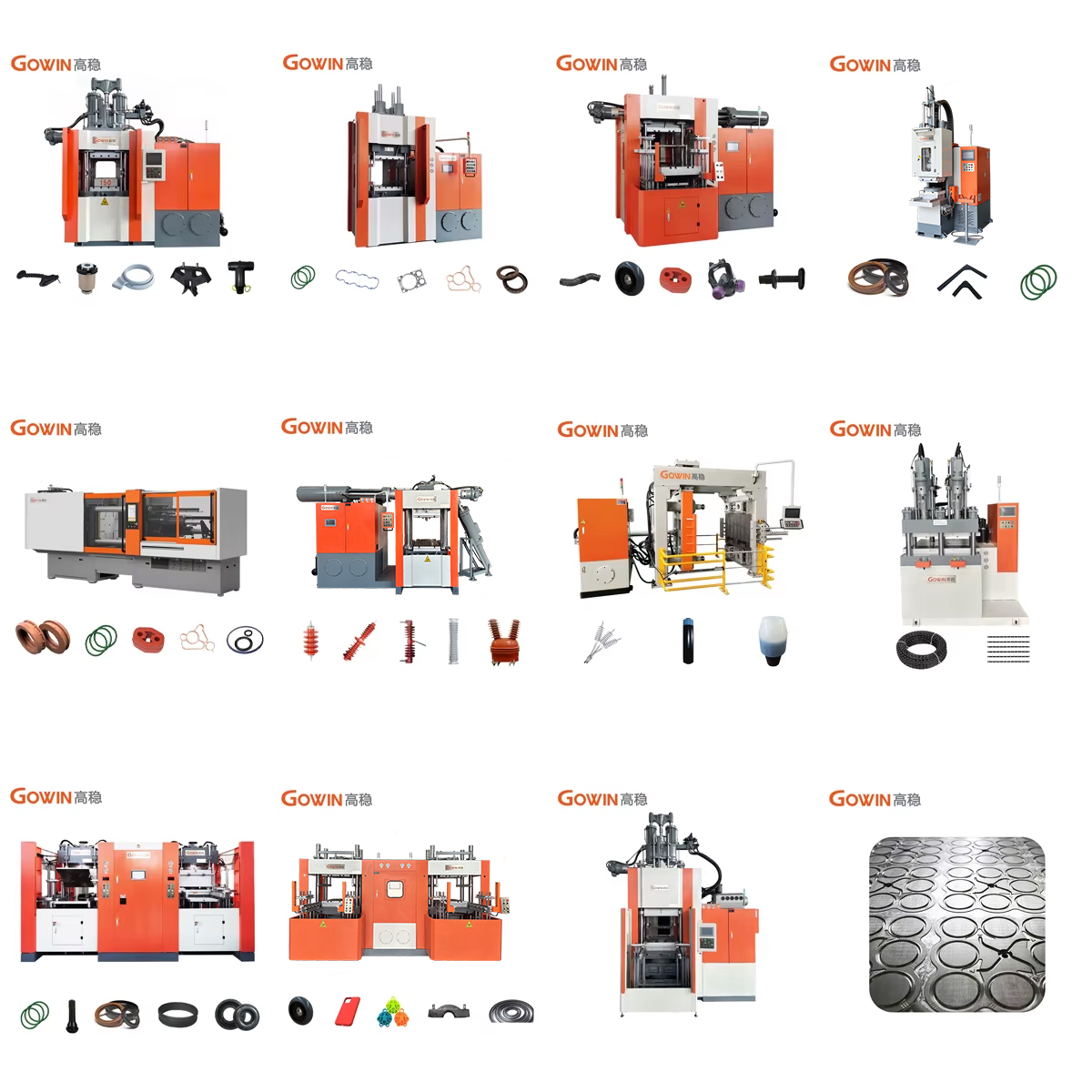 GOWIN have various series of rubber molding machines: vertical rubber injection machine, horizontal rubber injection machine, C-Frame rubber injection machine, double-injection rubber molding machine, rubber vacuum compression press, rubber compression press, and customized high-end rubber molding machines & molding solutions to match various market demand.