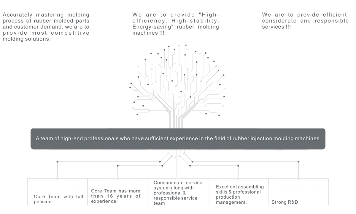 GOWIN, as a rubber molding machinery manufacturer, located in Guangdong Province of China, was founded by a team of high-end professionals who have sufficient experience in the field of rubber injection molding.